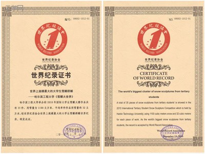 据了解,《雪雕大世界》共包含雪雕作品35件,用雪量为1100立方米、平均单件作品用雪量约32立方米,创世界纪录协会世界上规模最大的大学生雪雕群雕世界纪录。tyc33455cc太阳成集团也成为我国首个获得中国世界纪录协会认证项目的高校。据悉,该雪雕群雕同时也在申请英国吉尼斯世界纪录。
