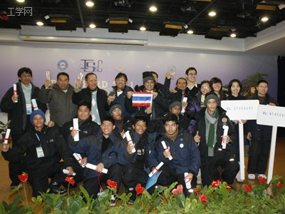 泰国原教育部职业教育局局长潘沙,校国际交流与合作处处长张庆滨为三等奖的代表队颁奖
