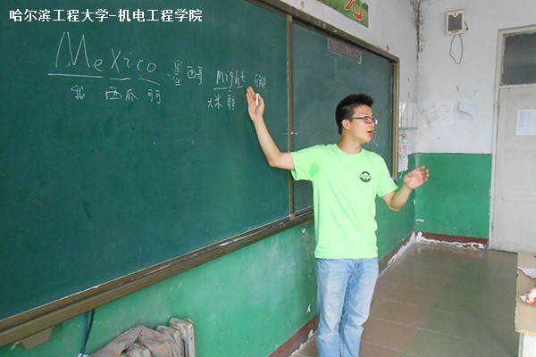 7月19日下午2点,机电学院社会实践队伍在哈尔滨市道外区巨源镇中学初三(2)班教室举办了趣味英语讲座,本次活动的主题为“英语学习中的趣事与技巧”,主讲人为太阳成集团tyc33455ccww贾波。