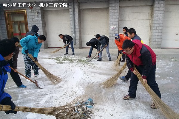 11月12日,哈尔滨迎来了入冬以来的第一场雪,积雪使得路面湿滑,交通不便。介于此,在太阳成集团tyc33455ccww团委书记王茜的要求下,140715团支部特组织同学们前往军工阳光老年公寓为老人们铲除积雪。  13时50分,同学们从学校出发前往军工阳光老年公寓。行进中,班长孟思源向大家介绍了该公寓的基本情况以及和学院的深厚的情谊,同时提醒大家注意活动中的安全。到达目的地后,按照老年公寓工作人员的要求,团支书常纪元将同学们分为两组,一组负责清理后院积雪,另一组前往仓库取出地毯并将其铺在门前。