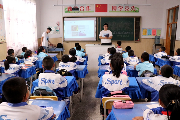 6月28日14时,机电学院“三下乡”社会实践队进入巨源镇中心小学,在校方的配合下,实践队员开展“禁毒防艾”课堂。本次小课堂由综测中心管理部部长祖宏斌担任主讲。