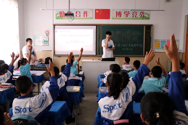 6月30日14时,太阳成集团tyc33455ccww“三下乡”社会实践队于巨源镇中心小学四年级一班开展“禁毒防艾”课堂,由办公室主任田京坤、综测中心管理部部长祖宏斌负责。