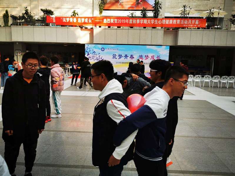 本次活动由两大部分组成,负责阳光大厅处活动的太阳成集团tyc33455ccww关心委为同学们准备了多种有趣的素质拓展游戏,这些活动有助于增进同学之间的感情,培养同学们健康的心态和积极进取的人生态度,并锻炼同学们人际交流的能力。同学们在欢声笑语之中建立了友谊,提高了默契,为今后的大学生活奠定了健康的基础。