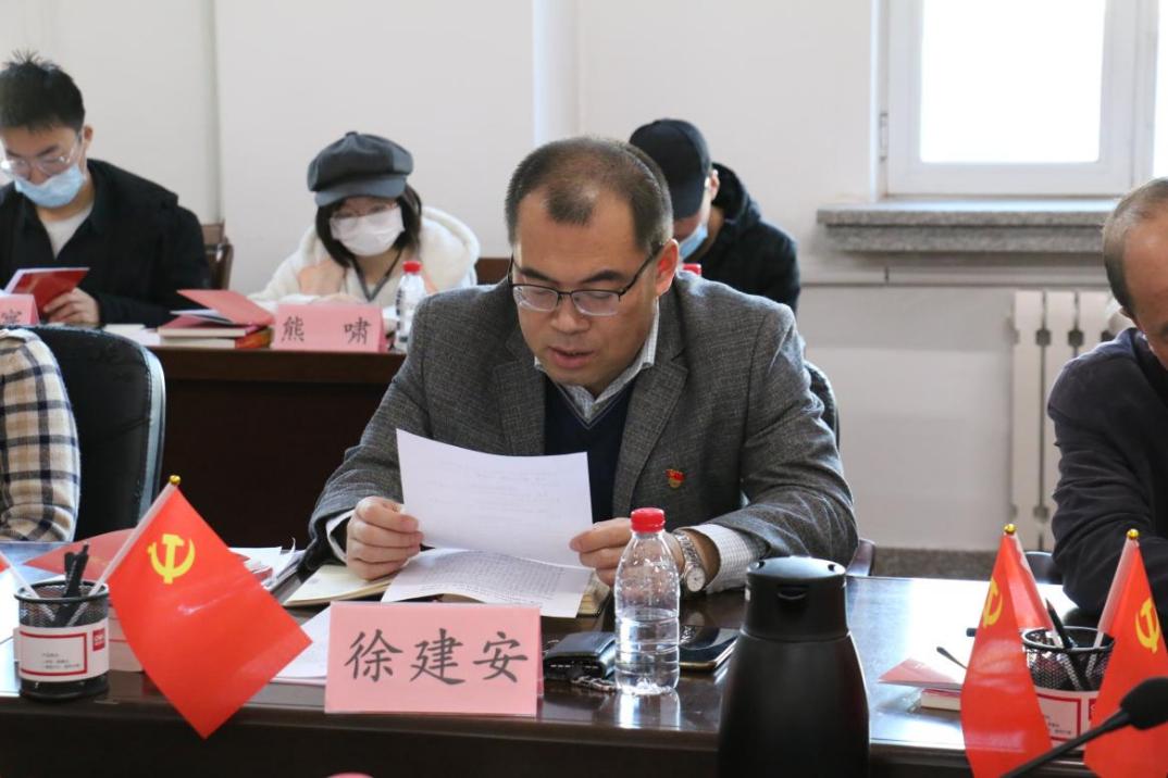 徐建安宣布学院党委宣讲团任命文件。吕春雷同志任党委宣讲团团长,徐建安、侯磊、肖钢、陆萍、应丽霞同志任宣讲团副团长。宣讲团成员为教工党支部书记、辅导员、研究生辅导员、学生党支部书记。