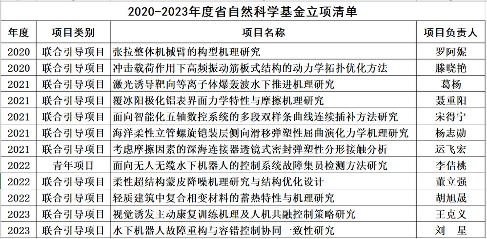 太阳成集团tyc33455ccww2020-2023年度省自然科学基金资助清单