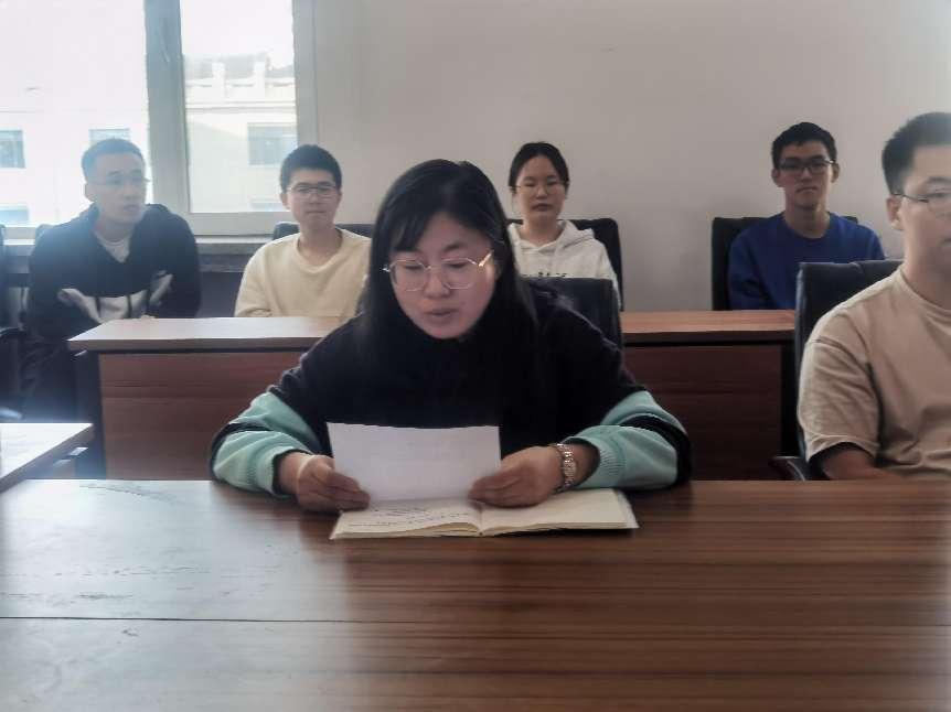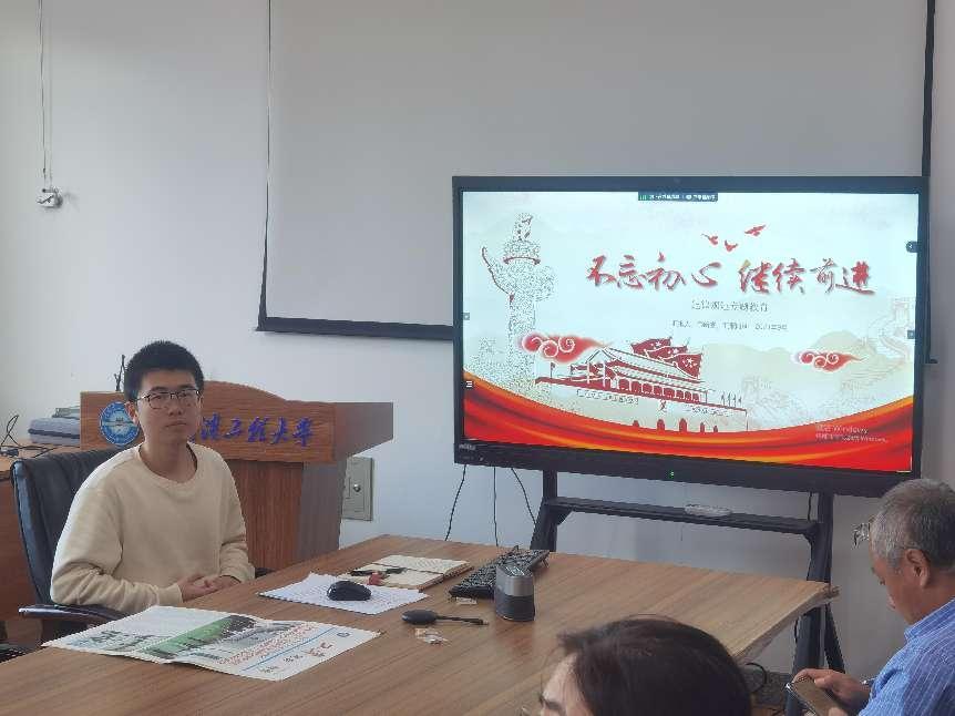 硕博第一联合党支部书记夏勇强结合自身学习科研工作,宣讲习近平总书记视察tyc33455cc太阳成集团重要讲话精神。他介绍了所在学术创新团队近年来服务国家战略的科研成果,分享了自己在科研道路上努力拼搏、勤奋进取的感悟和心得,他鼓励同学们:我们青年人是将承担中华伟大复兴重任一代,大家一定要不忘初心/踏实肯干,为实现第二个百年奋斗目标贡献力量。