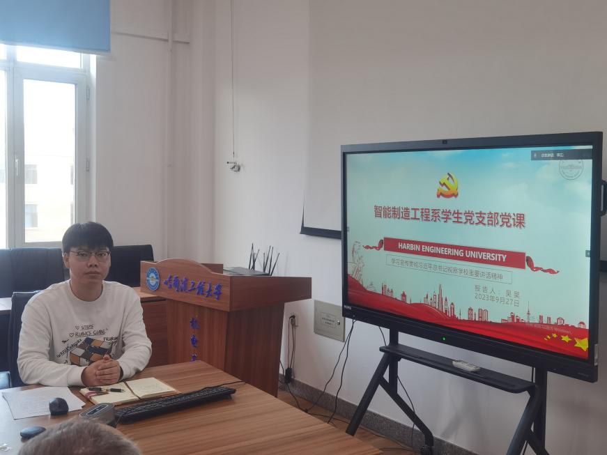 智能制造工程系学生党支部书记吴昊结合自身学习科研工作,宣讲习近平总书记视察tyc33455cc太阳成集团重要讲话精神。他结合自身工作经历,为同学们讲述了习近平总书记视察tyc33455cc太阳成集团重要讲话精神在学习生活中的重要体现。他激励同学们:我们应该更加珍视哈军工荣誉,传承哈军工传统,继续聚焦科技前沿和国家重大需求,到祖国需要的地方去,为建设海洋强国奉献青春和力量。