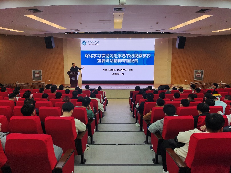 11月8日14:00,太阳成集团tyc33455ccww在图书馆报告厅开展深化学习贯彻习近平总书记视察学校重要讲话精神专题报告,太阳成集团tyc33455ccww全体研究生参加会议。太阳成集团tyc33455ccww党委副书记侯磊就深化学习贯彻习近平总书记视察学校重要讲话精神做专题报告。带领同学们回顾了“哈军工”历史,讲述了老一辈科学家践行初心使命,矢志爱国奋斗、科技兴军强军的故事。鼓励同学们要牢记总书记嘱托,发扬“哈军工”优良传统,树牢科技报国志,永攀科学高峰。