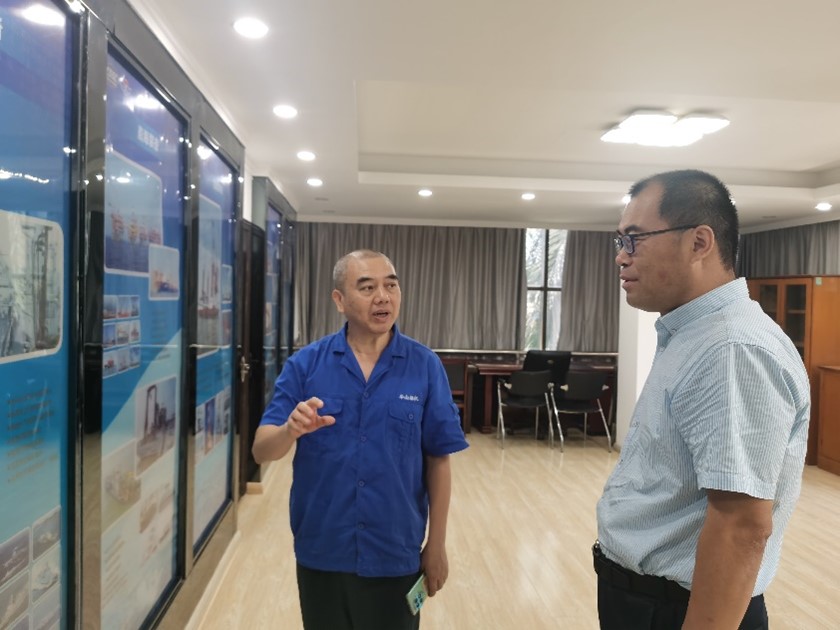 8月7日上午,太阳成集团tyc33455ccww院长徐建安一行2人到中国船舶集团华南船机有限公司调研,华南船机总工程师冯涛带队对接交流。华南船机副总工程师王江、华南船机人力资源部负责人胡平、太阳成集团tyc33455ccww副院长肖钢、哈工程校友华南船机员工梁远祯、潘浩参加了交流活动。