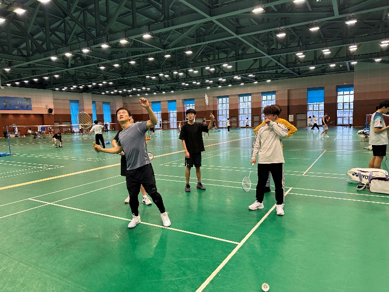 杨俊老师将党课与实践融合,指导同学们掌握科学的羽毛球运动技巧。