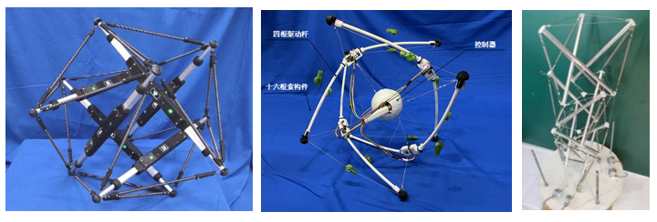 进行球形张拉整体机器人、四杆张拉整体机器人、张拉整体机械臂等构建、力学性能、运动学和动力学、控制方法和策略的研究。