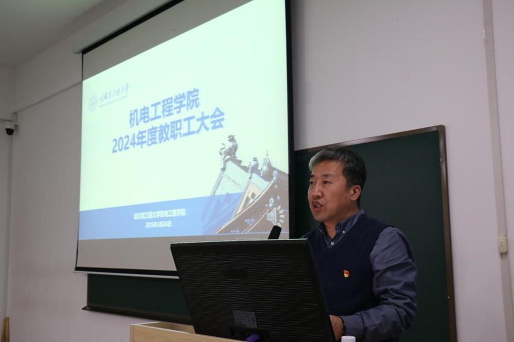 院长、党委副书记、工程训练中心主任徐建安同志作2024年度学院工作报告,总结了学院2024年的成绩,分析了学院当前发展阶段所面临的机遇与挑战,并对2025年新学期工作做出了全面布置。徐建安同志表示,2024年学院深入贯彻落实党的二十届三中全会以及习近平总书记视察学校时的重要讲话精神,坚决落实学校党委提出的“五个坚持、五个注重”办学原则,取得了一定成效。新的一年里,学院将聚焦国家船、海、军、民重大任务需求,瞄准机械工程学科未来发展动态,深化学院学科特色内涵,牢记立德树人根本任务,做好有组织的人才培养和科学研究工作,以学科建设为引领把学院的各项发展推向新的高度。