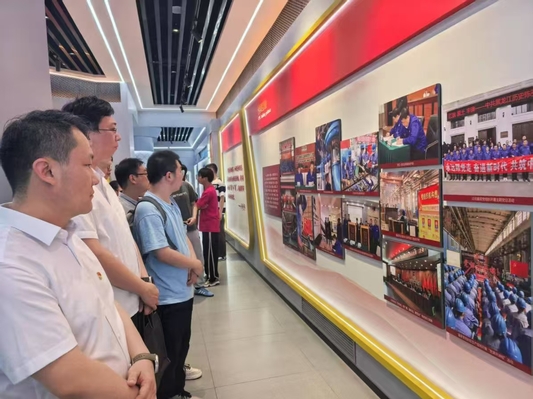 随后,师生党员深入冲剪分厂与线圈分厂。在冲剪分厂,大型自动化设备有序运转,金属板材在精密模具下快速成型,展现出高效的现代化生产模式。在技术人员的讲解下,师生们了解到先进的冲压工艺如何保障电机零部件的高精度与高质量。而在线圈分厂,工人们正专注地绕制电机线圈,一根根纤细的导线在他们手中化作精密的绕组,严谨的工作态度和精湛的技艺让师生们赞叹不已。
